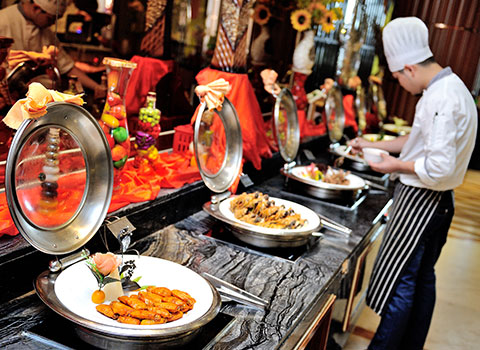 酒店擁有風格迥異的各式餐廳:“世紀廳”大型宴會廳豪華典雅,是舉辦各類活動及婚宴、壽宴、滿月宴的首選; 32間中餐包廂富麗堂皇,是您宴請貴賓的理想去處,您可以品嘗到原汁原味的各式海鮮;大堂吧供應價廉物美的各式飲品、茶點,是賓客休閑會友的好去處。